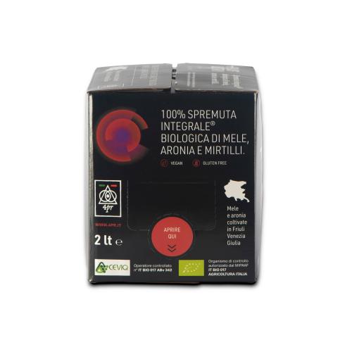 Cold pressed juice composed of 70 percent organic apple juice, 20 percent Aronia melanocarpa juice and 10 percent blueberry juice, a mix of healthy fruits suitable for everyone, especially children because of the pleasant taste.