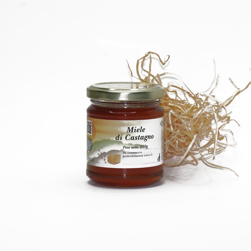 Chestnut honey is derived from the nectar of Castanea sativa. Due to its high fructose content, it remains liquid for a long time; it has a more or less dark amber colour. The purer it is, the lighter amber it is; it takes on darker hues when mixed with the honeydew produced on the same plant by aphids. It has a smell reminiscent of Marseille soap and an initially sweet taste, with a note of mint soon turning into a persistent bitter aftertaste.