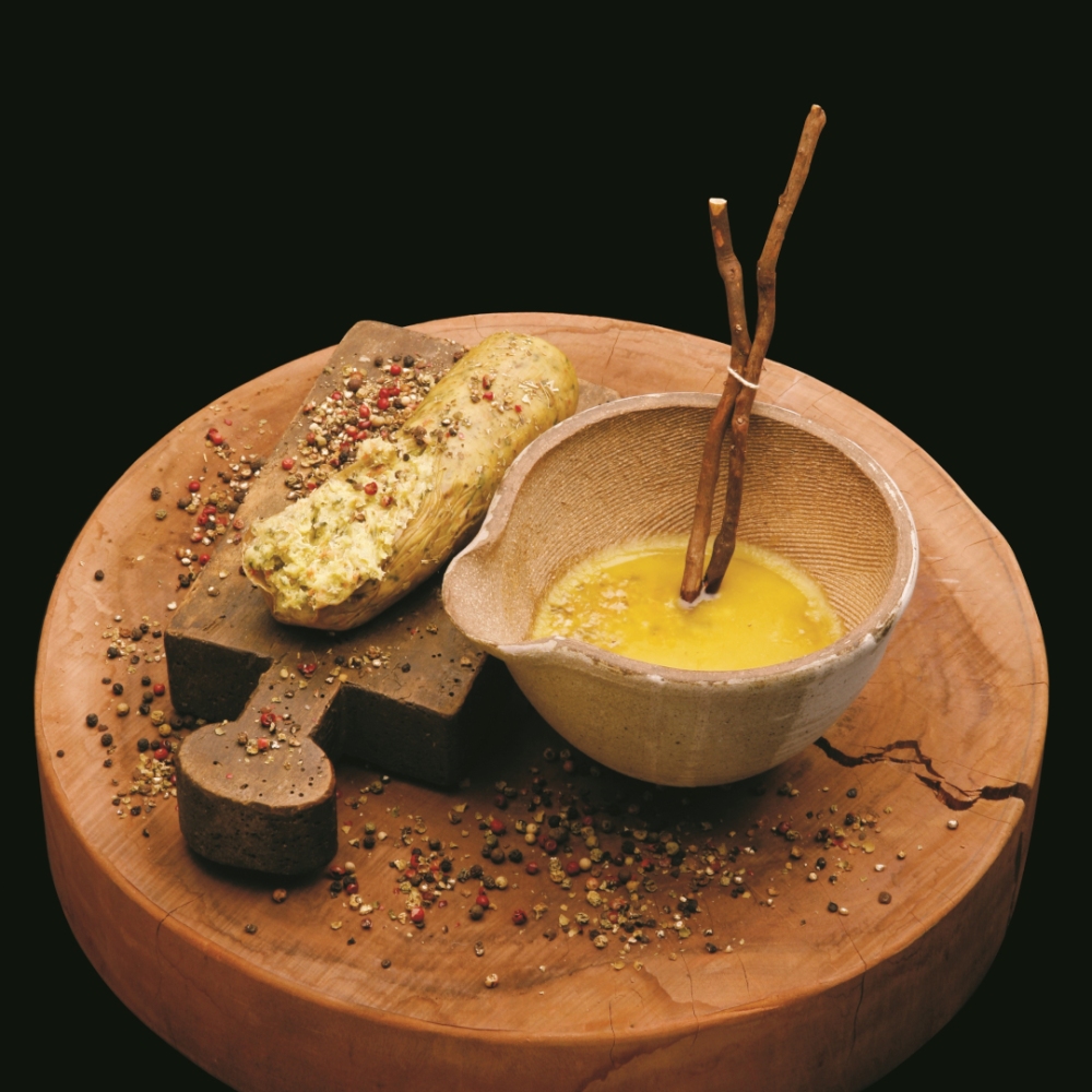 Si presenta come un insaccato, ottenuto miscelando lardo fresco macinato con verdure tritate.